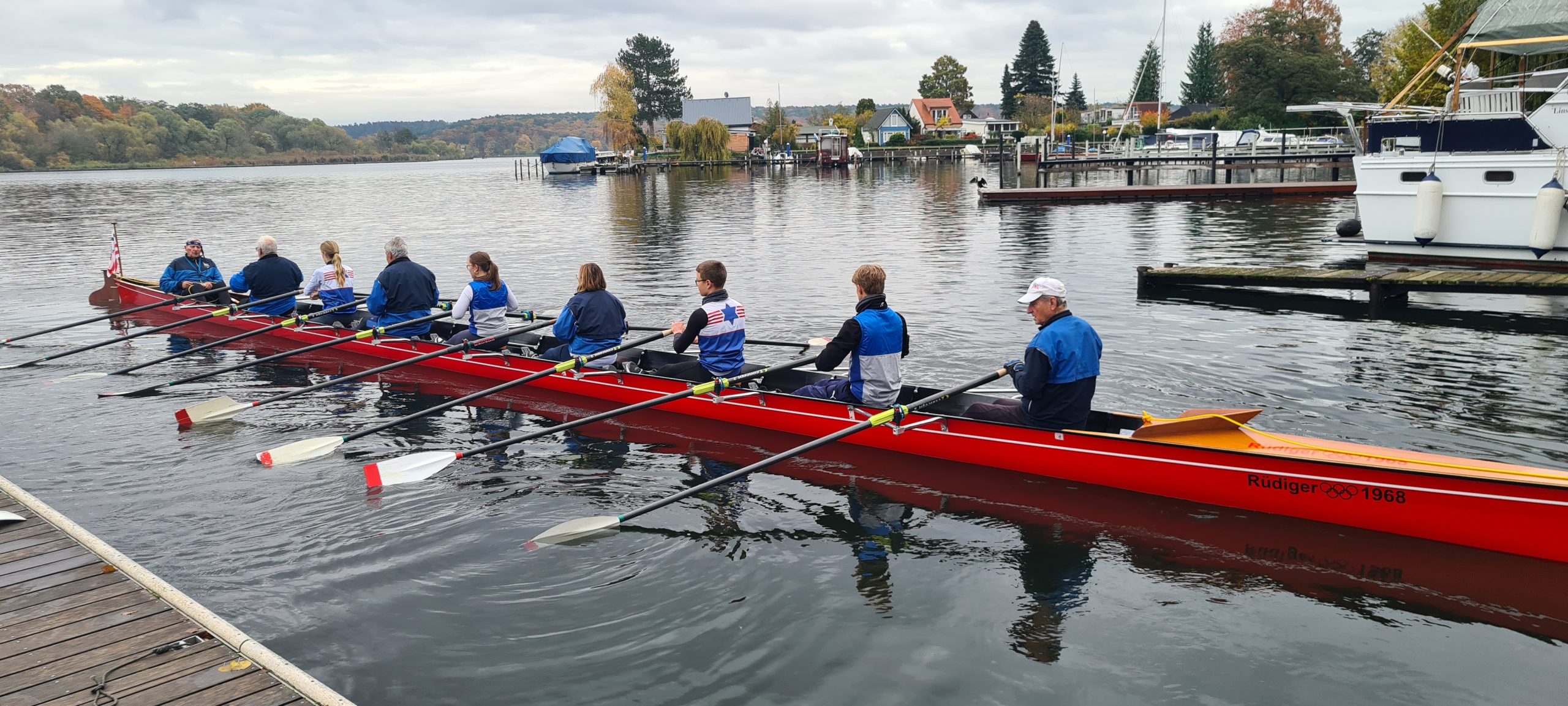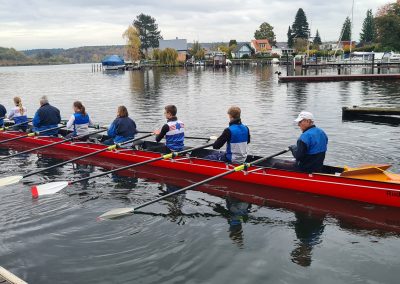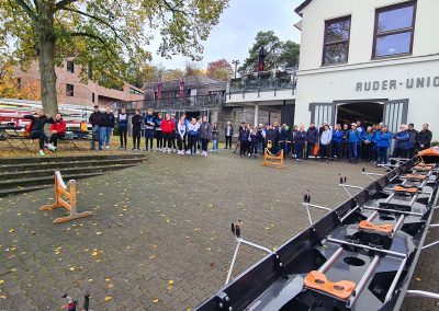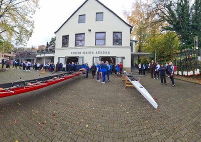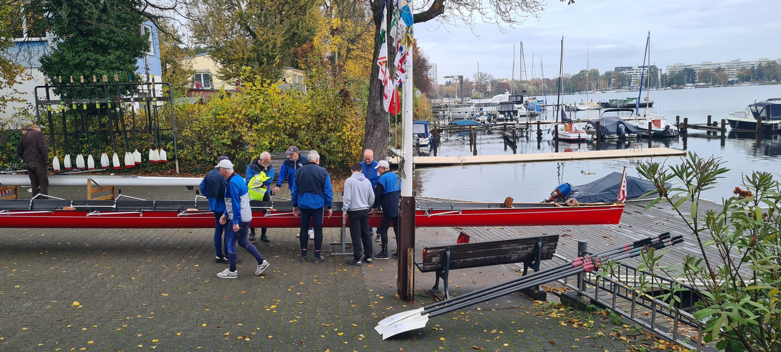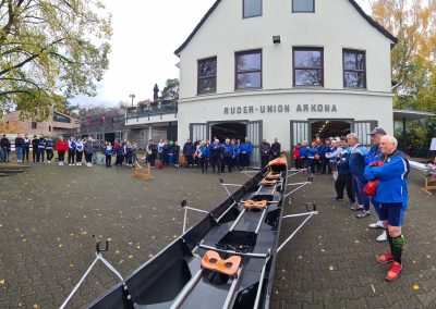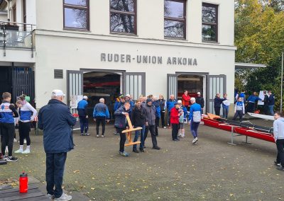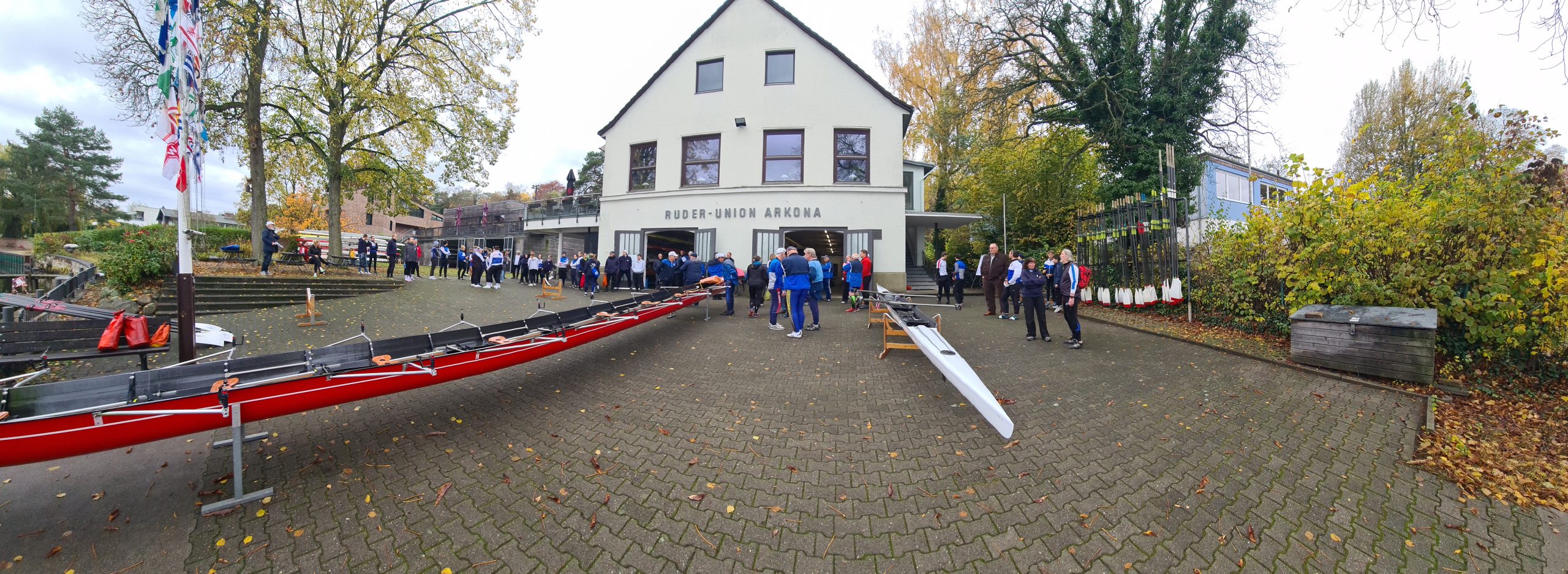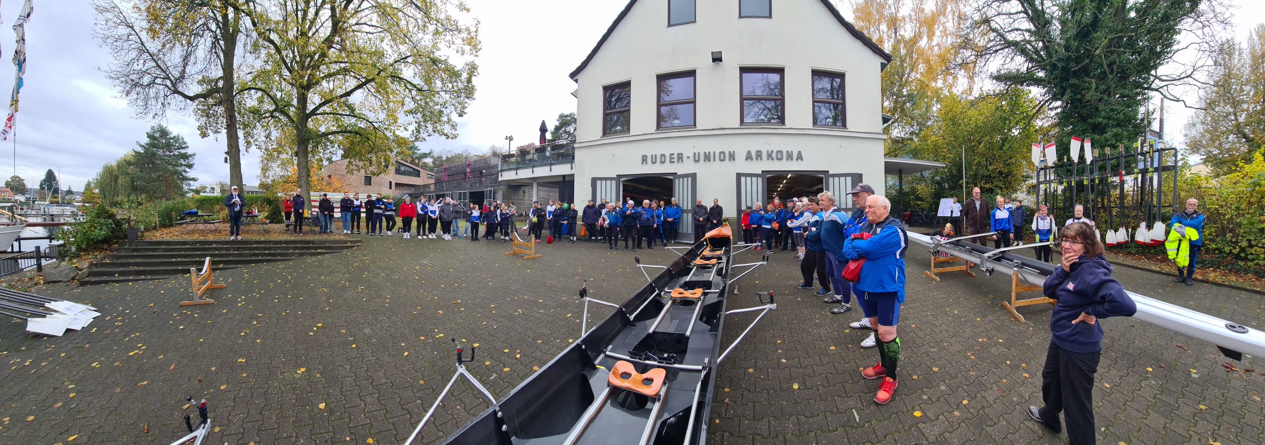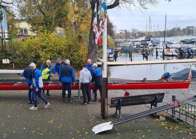 Insgesamt 12 Boote mit 61 Ruderern beteiligten sich beim traditionellen Abrudern am 2.11.2025, an einem recht trüben Sonntag. Traditionsgemäß ging es nur bis zu Breitehorn. Mittags waren alle Boote schon wieder zurück und Günther hatte kalte und heiße Getränke bereitgestellt.