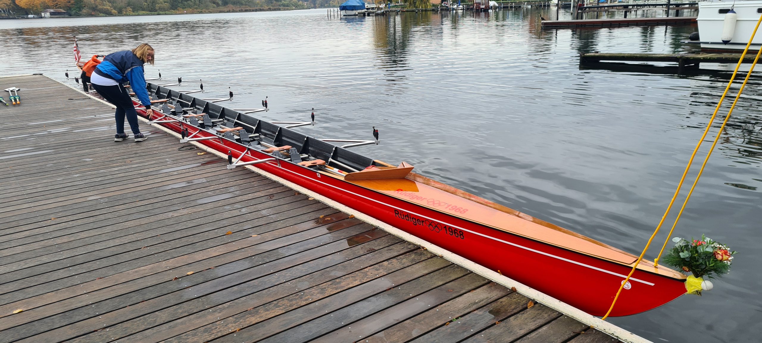 Gleichzeitig wurden ein neuer Gig-Achter von der Firma Schellenbacher GmbH aus Linz, Österreich und ein Zweier getauft. Der Achter wurde aus Spenden der Mitglieder finanziert, der Zweier wurde durch eine großzügige Spende der Richard Motte Schröder Stiftung ermöglicht. Achter und Zweier gingen nach der Bootstaufe sogleich auf Jungfernfahrt. Die Namensgebung für den Achter war mit „Rüdiger 1968“ eine Ehrung für unseren kürzlich verstorbenen Gold-Medaillen Gewinner von Mexiko Rüdiger Henning im legendären Deutschland-Achter.