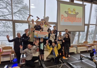 Im Anschluss an die JJHV, haben sich unse­re Kin­der beim Nudel­sprint ordent­lich ange­strengt und groß­ar­ti­ge Leis­tun­gen erzielt. Drei unse­rer Sportler*innen konn­ten eine Plat­zie­rung erzie­len und sich die begehr­ten Nudeln sichern. Das High­light war aber der ers­te Platz unse­rer Staf­fel! Der Team­geist erfüll­te den Raum, wäh­rend sich unser digi­ta­les Boot auf dem Bild­schirm 21m vor dem Zweit­plat­zier­ten über die Ziel­li­nie schob! Ein span­nen­des Kopf-an-Kopf-Rennen.